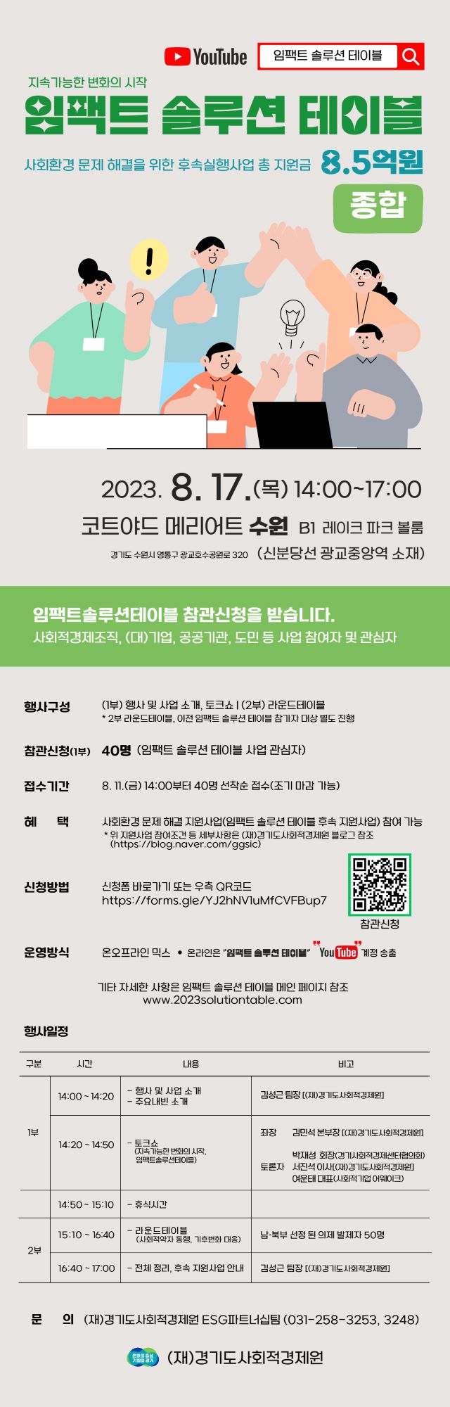 교육문화사회 경기도사회적경제원, 종합 임팩트 솔루션 테이블 개최 및 후속 지원사업 시작 By 박시은 기자 - 2023년 8월 18일 0 26 Facebook Twitter Pinterest WhatsApp 경기도사회적경제원 출처 : 경기도사회적경제원