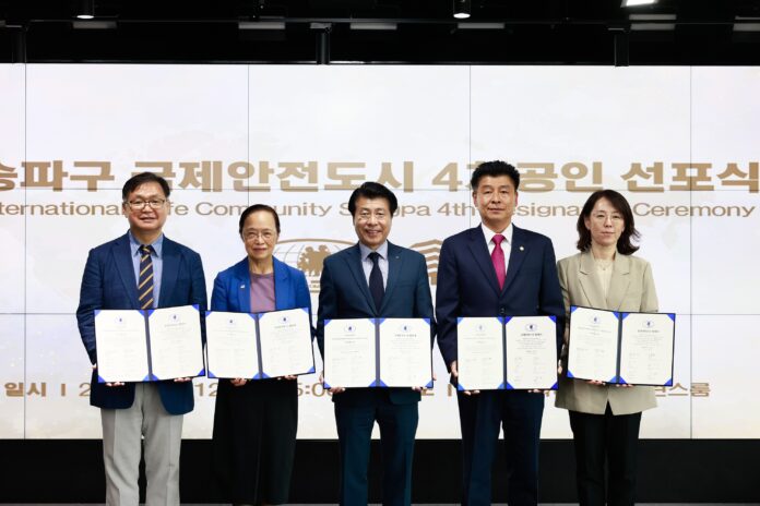 송파구(구청장 서강석)가 국제안전도시 인증센터(ISCCC)로부터 ‘국제안전도시 제4차 공인’ 인증을 받고, 지난 12일 선포식을 개최하여 세계적인 안전선도 도시로서의 위상을 굳건히 다졌다.