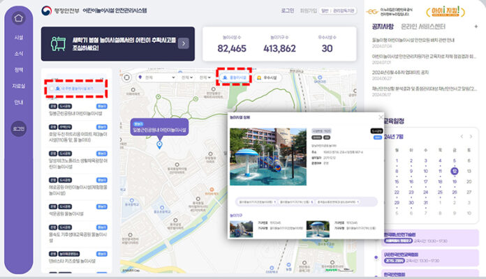 특히 이 시스템은 물놀이시설 외에도 전국 8만여 개의 어린이놀이시설 안전정보도 제공한다.